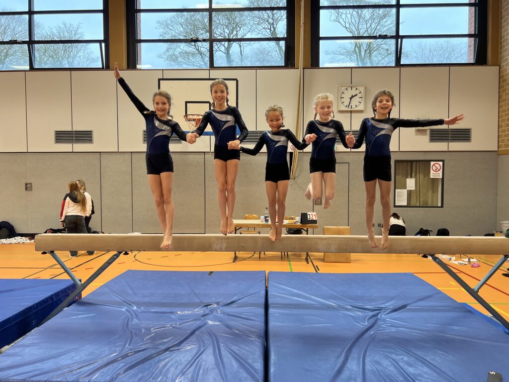 Am 15.11.2025 fand die Rückrunde der Bezirksklasse Nachwuchs für die G3/G4-Turnerinnen in Hage statt. Früh am Morgen machten sich Frieda Lage, Lea Holtermann, Rieke Müller, Nele Prövestmann und Thea Schulte im Bulli auf den Weg.